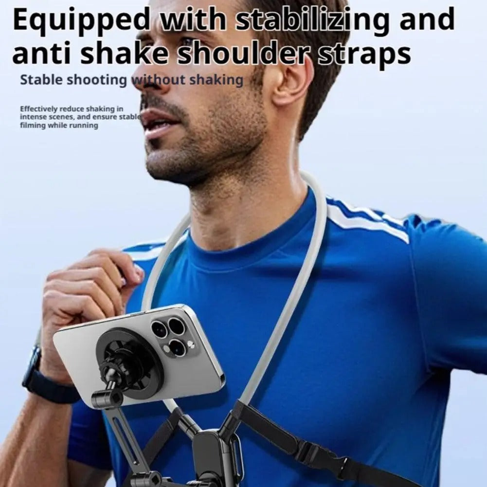 Magnetic/clamp neck mount for mobile phones, first-person perspective shooting, outdoor activity recording, and action camera holder.for VLOG