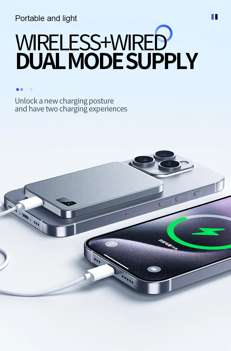 New Ultra thin Alloy Power bank Magnetic Power Bank Wireless Fast Charger For Mag safe Backup battery For iWatch Series iPhone 13,14,15,16,17